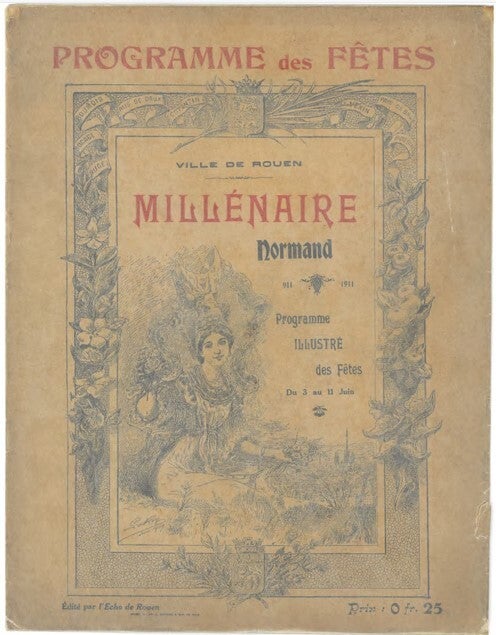 Supra, la plaquette des festivités du millénaire normand à Rouen (aussi lisible que possible sur grand écran).