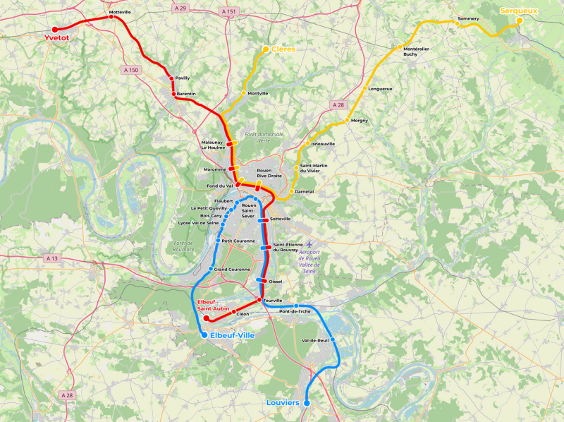 Le projet comprend trois lignes dont une passant par la gare Saint-Sever projetée.